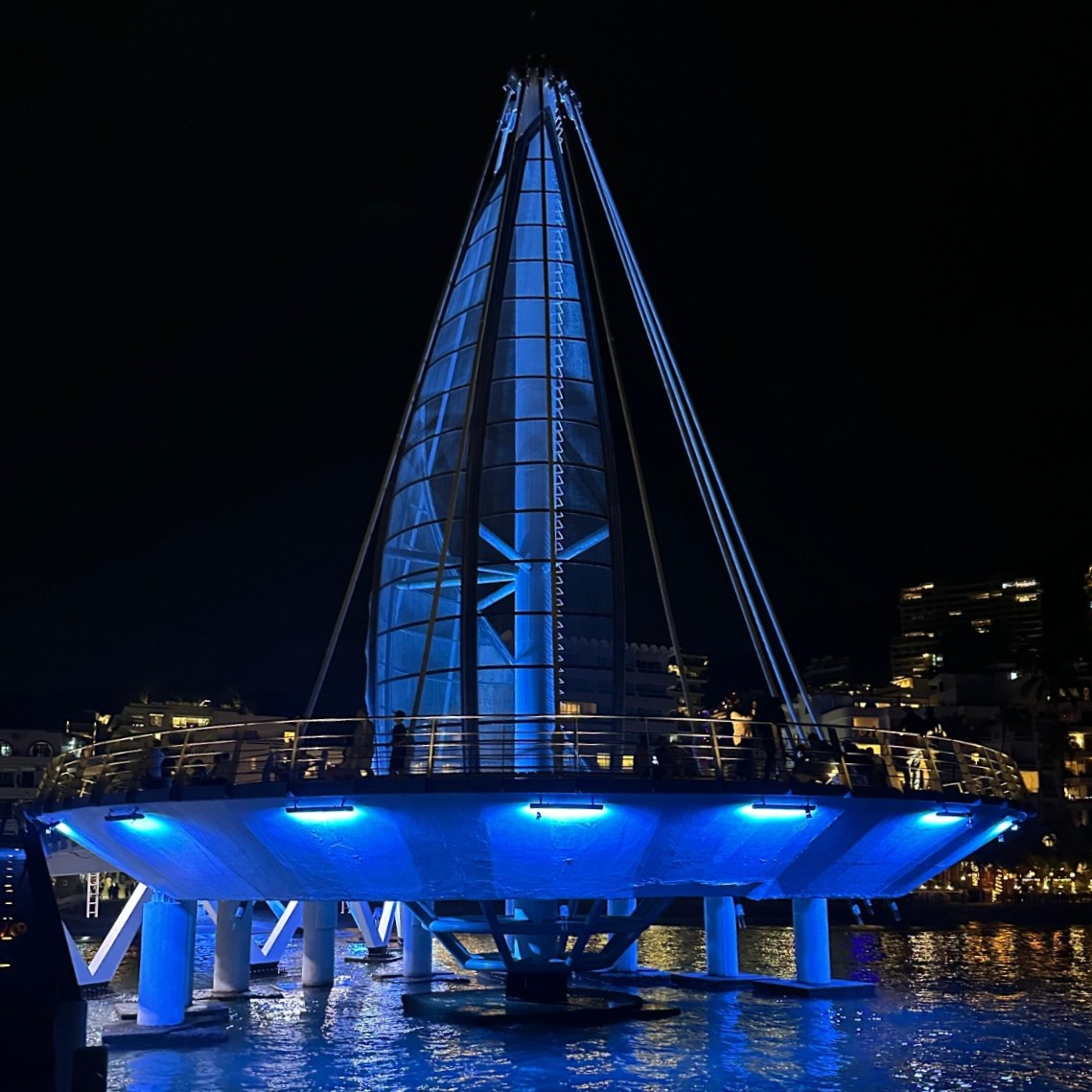 Ubicado en Vallarta, se implementaron luminarias RGBW con capacidad de resistir en ambientes salinos, y un sistema capaz de controlar estas luminarias y funcionar mediante un calendario para encendidos y apagados de acuerdo a las festividades locales.